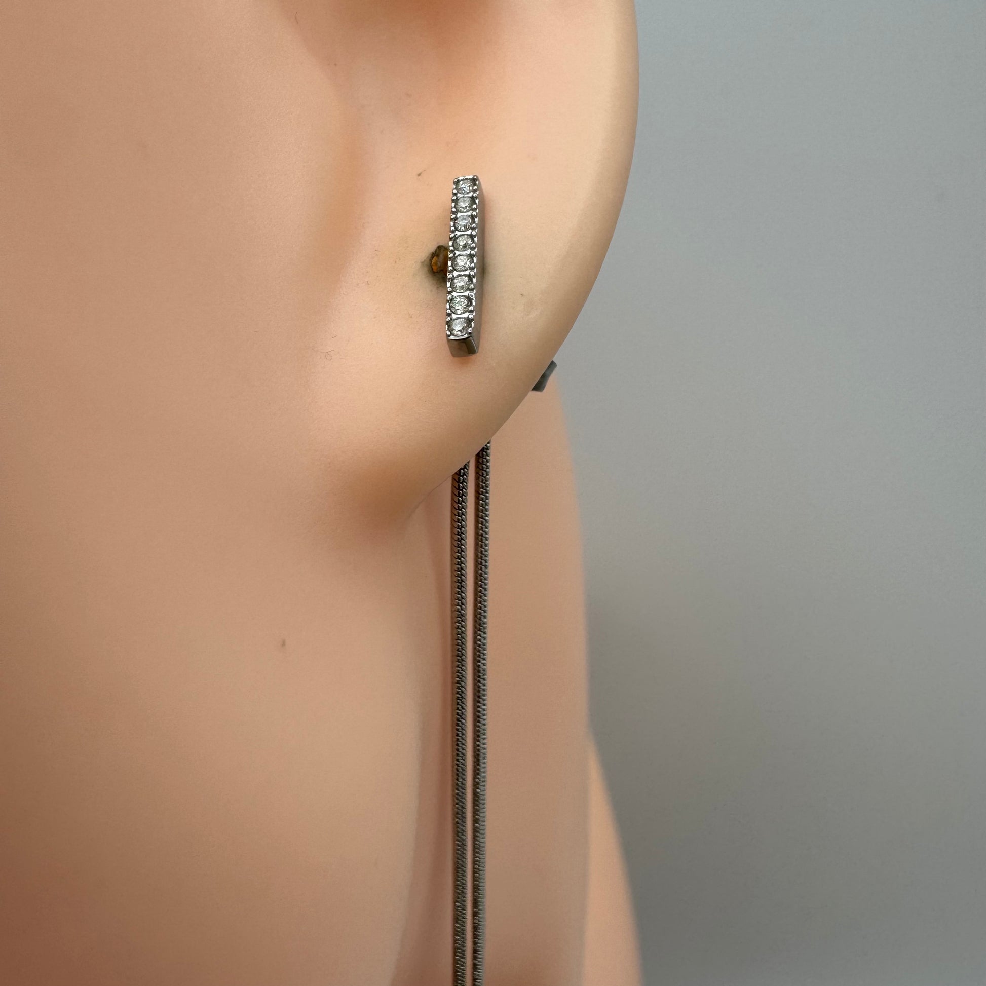 Brincos Risco de Brilhantes com Fios Pendentes Prateado