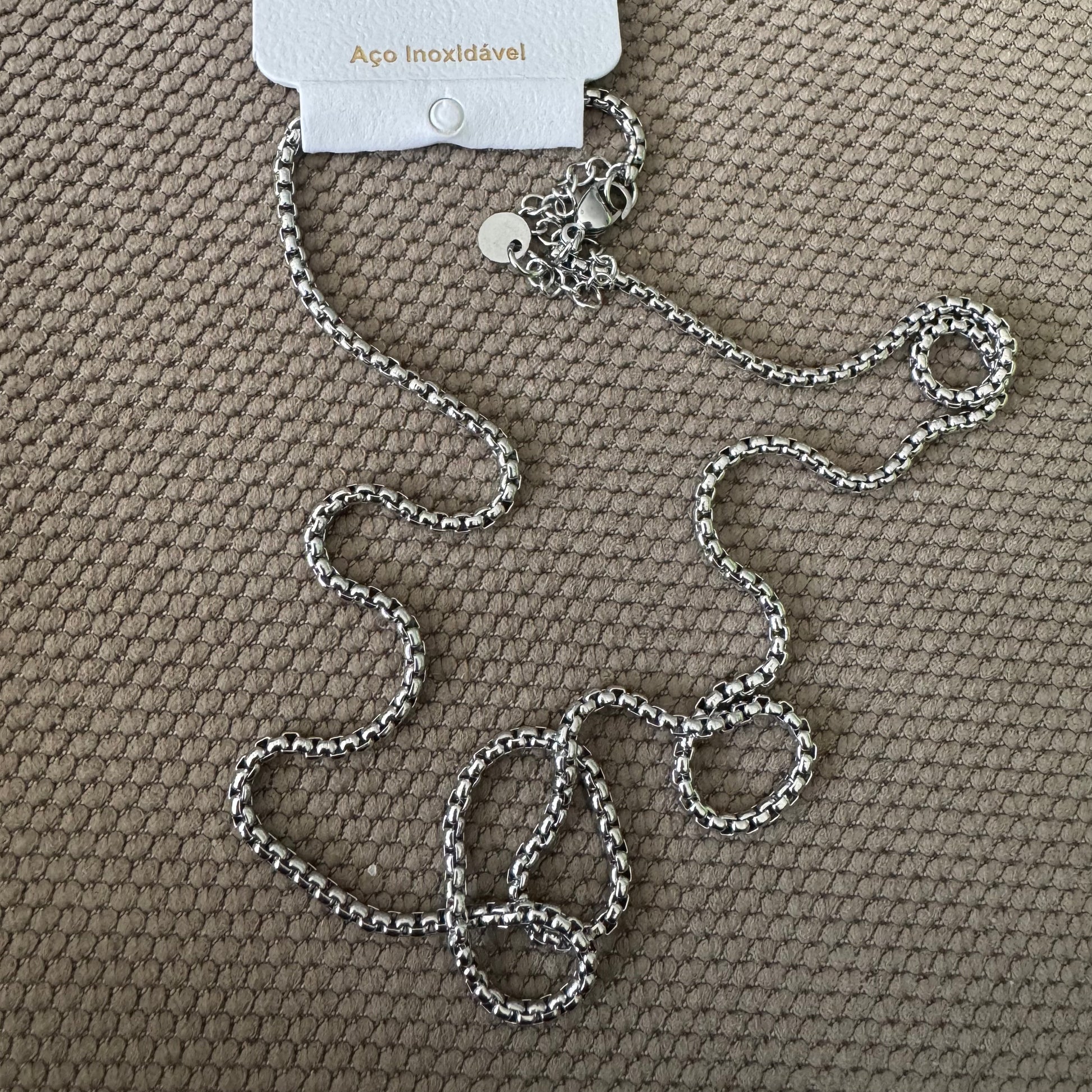 Corrente Homem Prateada Aço Inox Malha Arredondada de Corrente