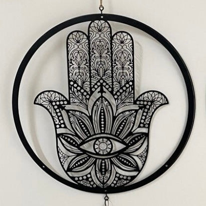Espanta Espirito, Redondo, Preto, Hamsá e Corda (30cm)