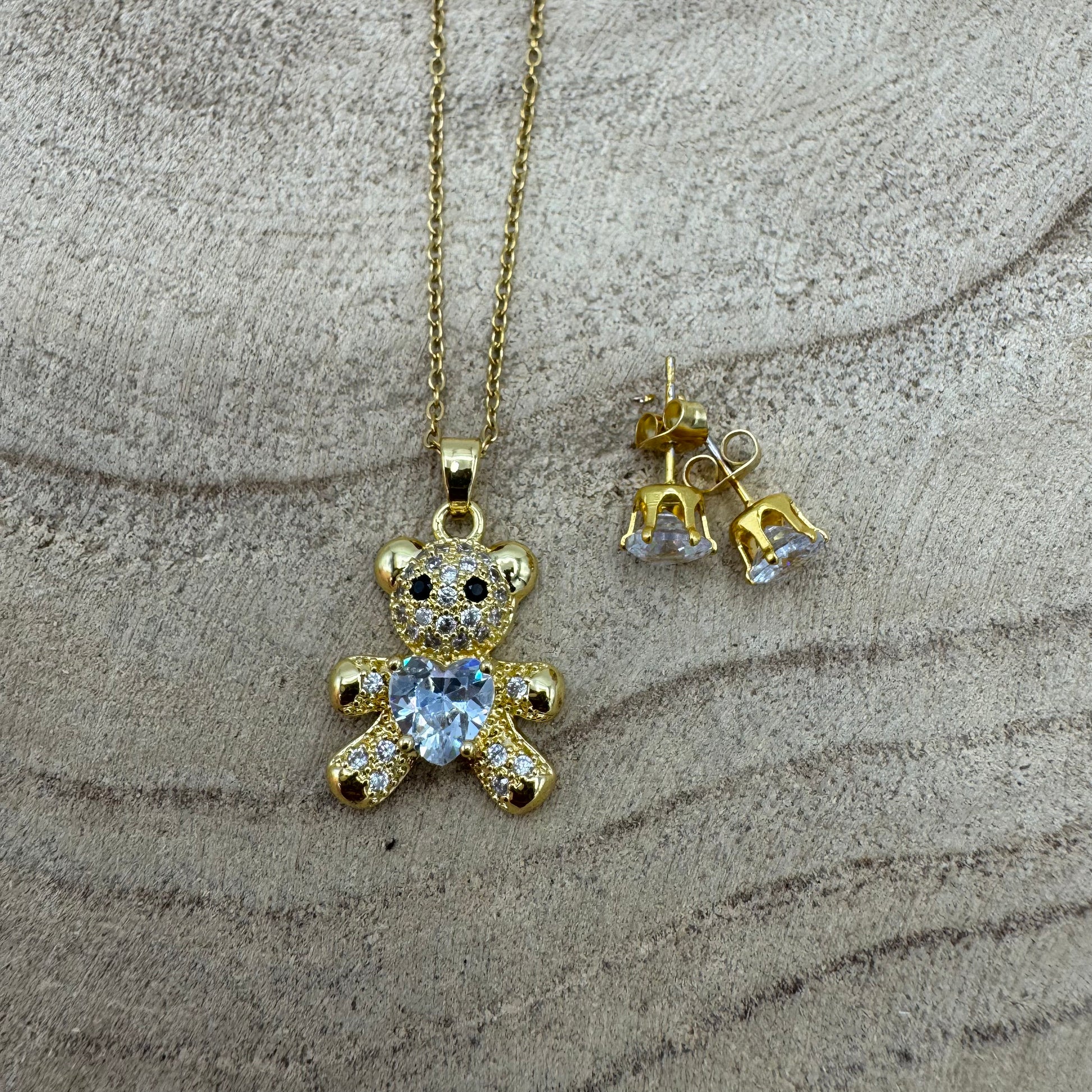 Fio Urso Coração Brilhante Dourado (Oferta Brincos)