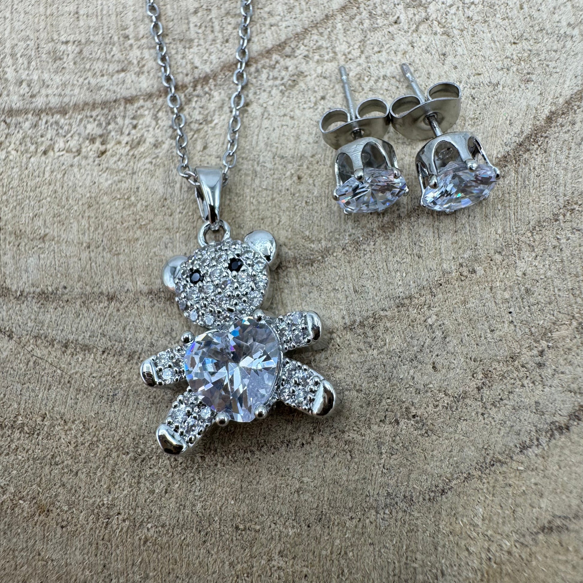 Fio Urso Coração Brilhante Prateado (Oferta Brincos)