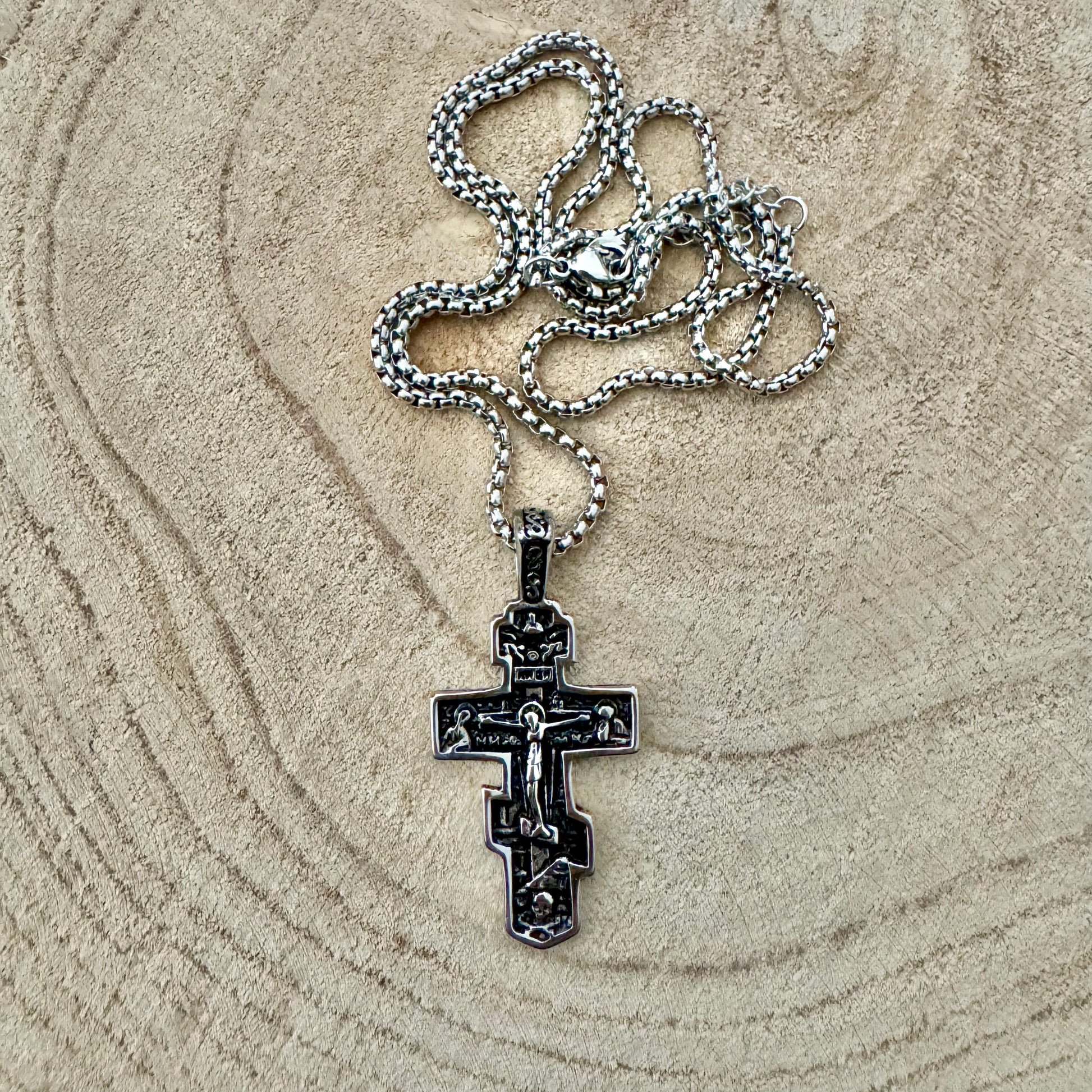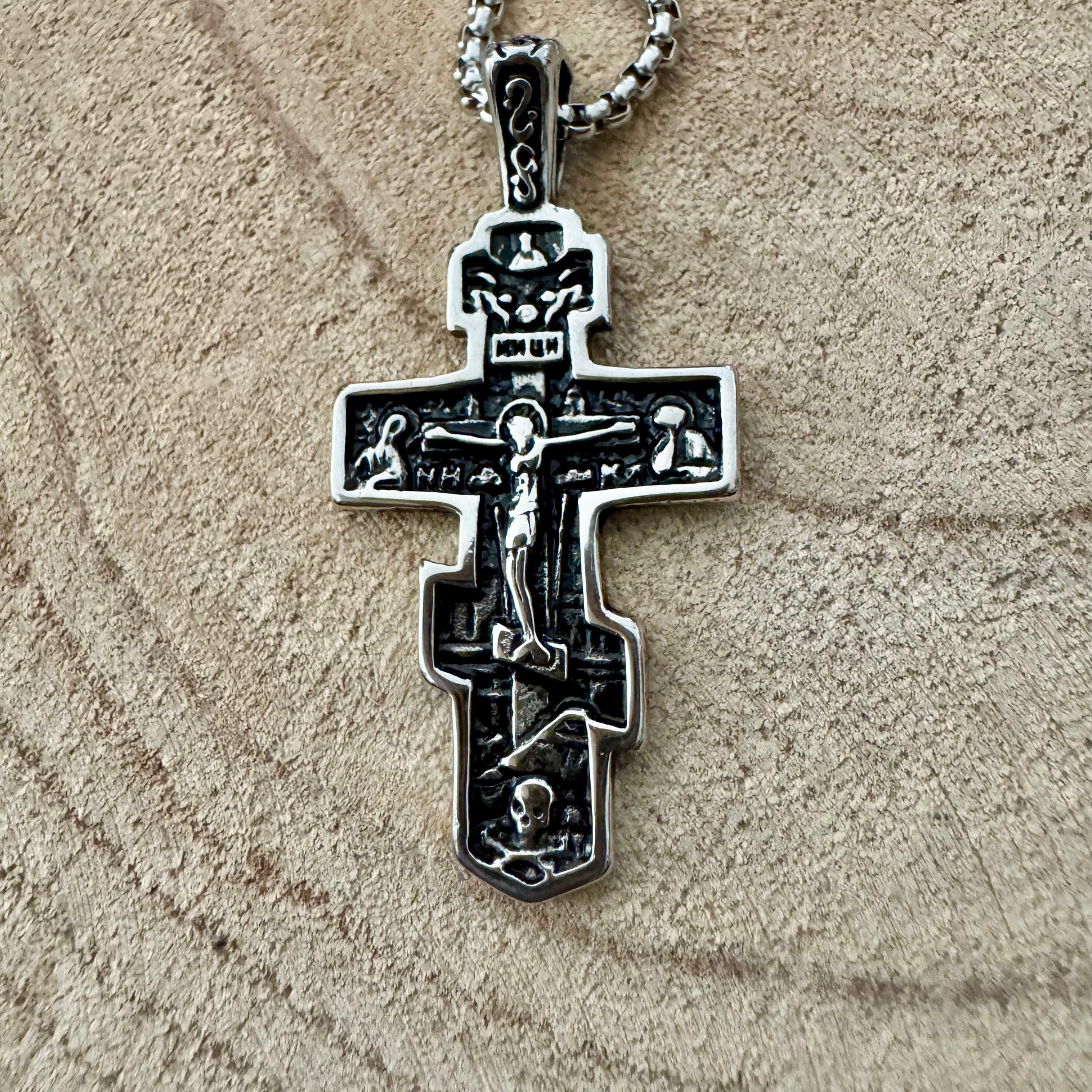 Pendente Homem Prateado - Cruz Russa Ortodóxa